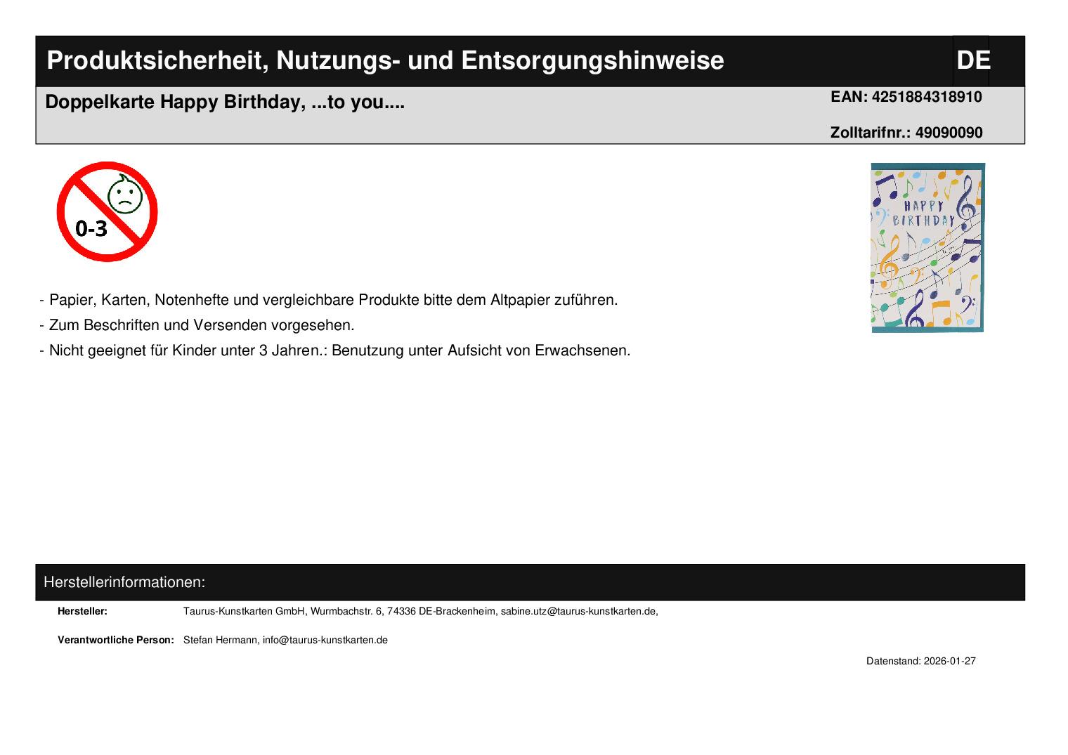 Doppelkarte "Happy Birthday to you" mehr