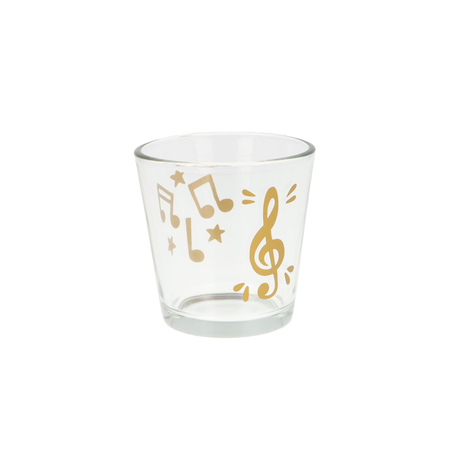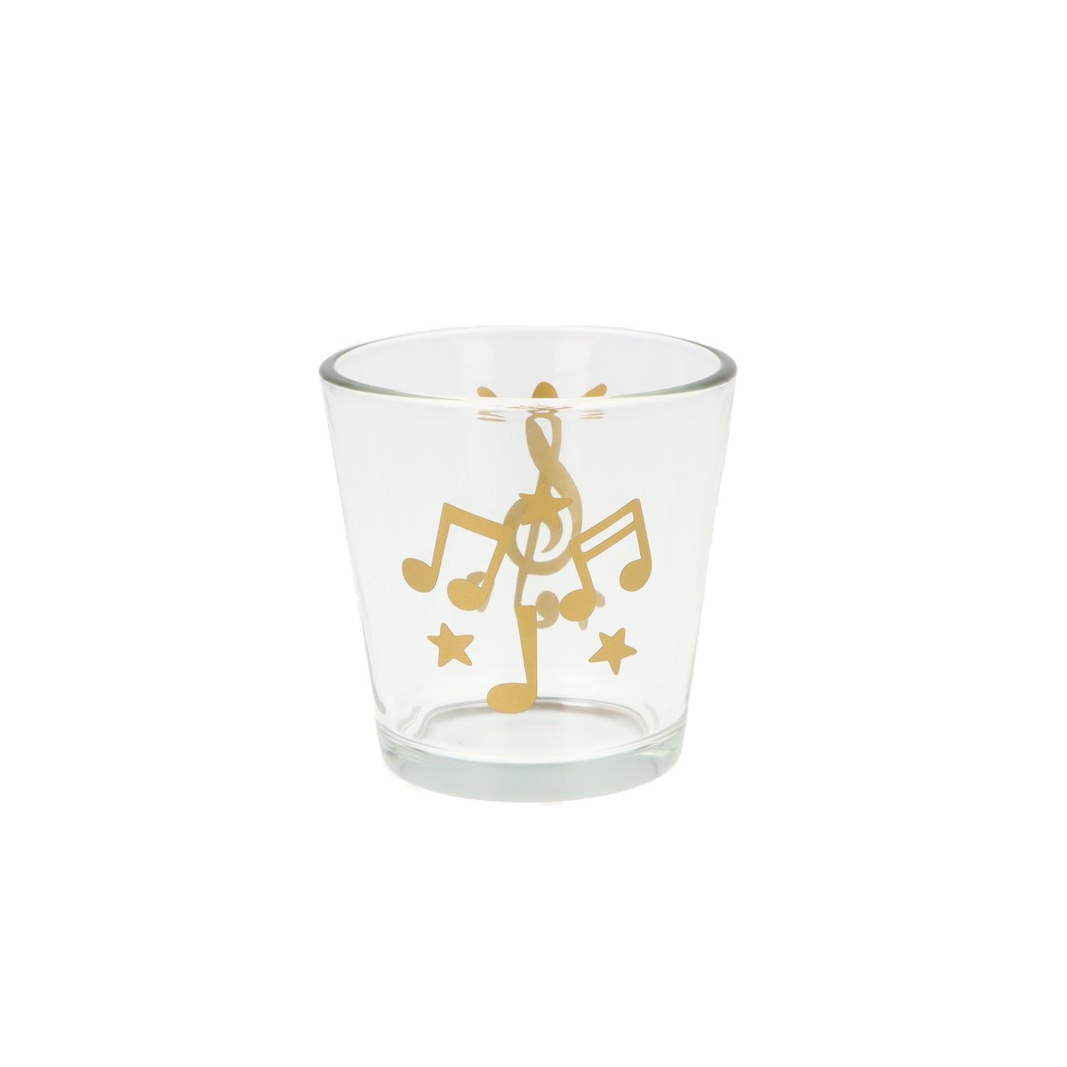 Teelichtglas mit Violinschlüssel, Noten und Sterne - gold