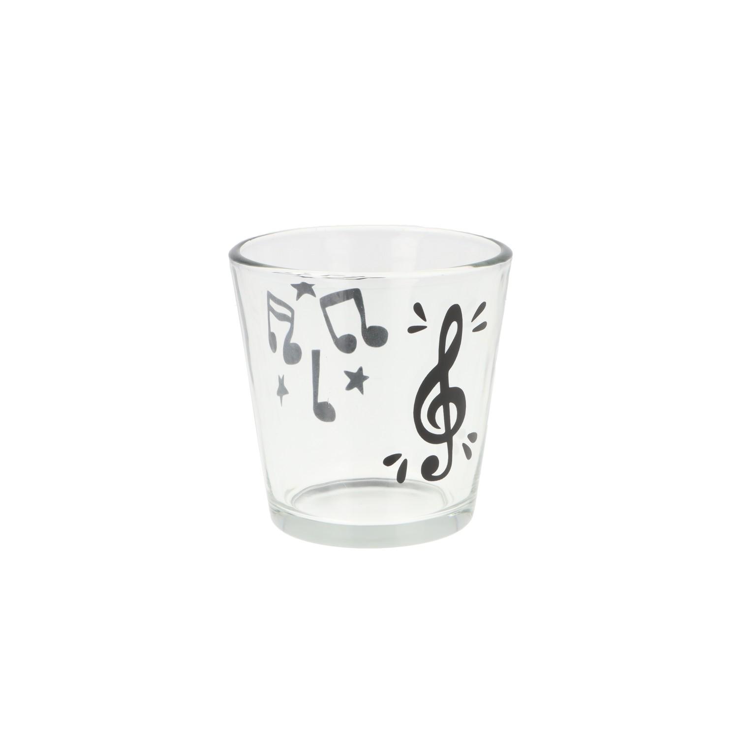 Teelichtglas mit Violinschlüssel, Noten und Sterne - schwarz