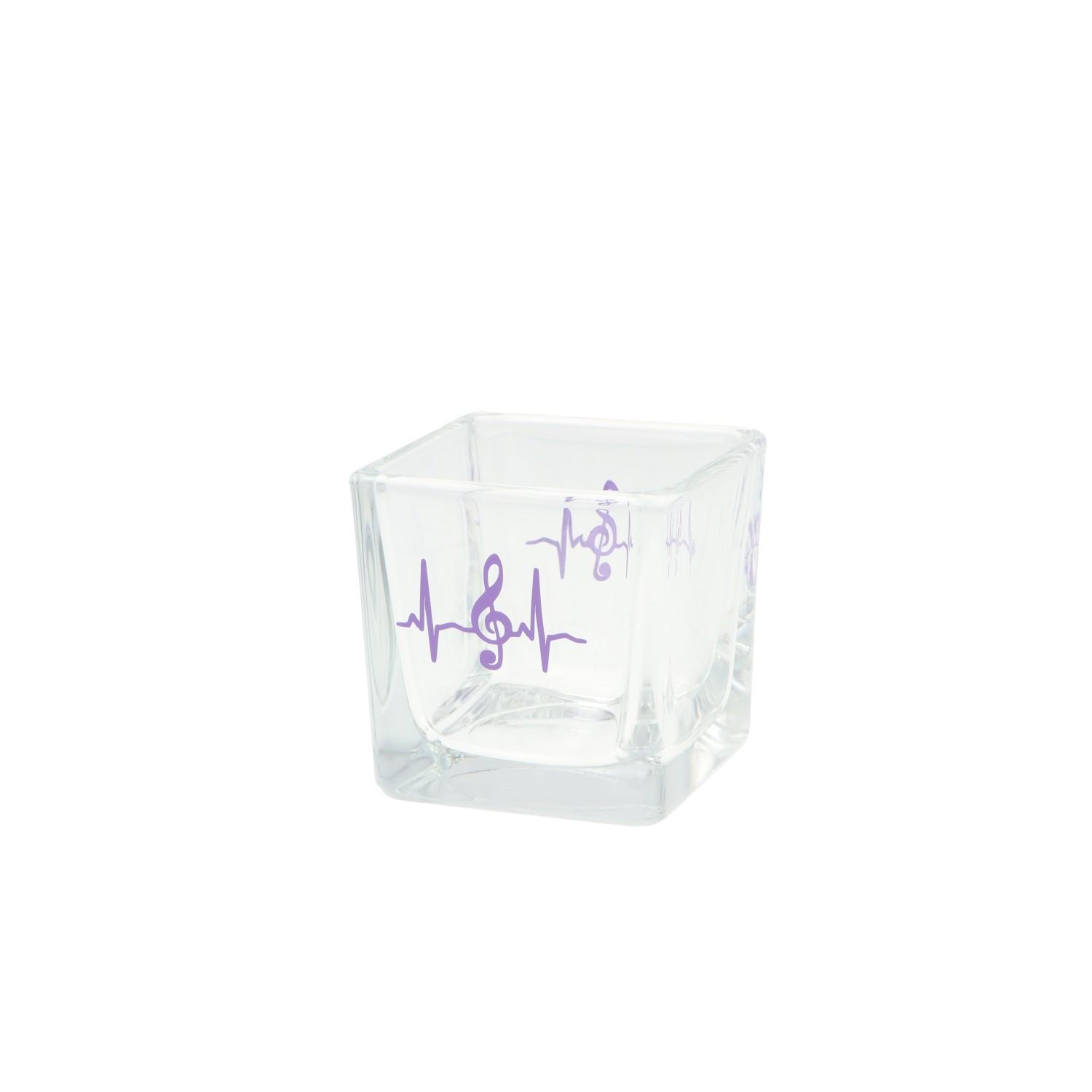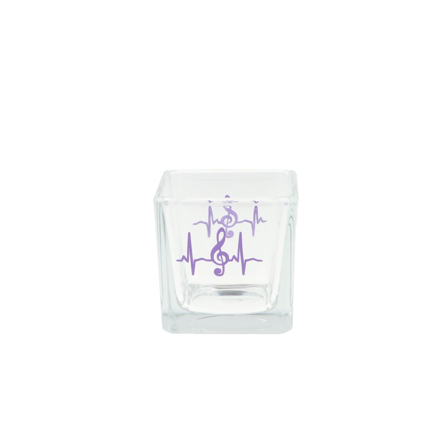 Quadratisches Teelichtglas mit Herzschlag und Violinschlüssel