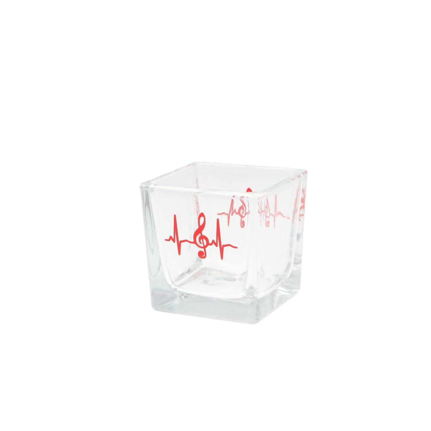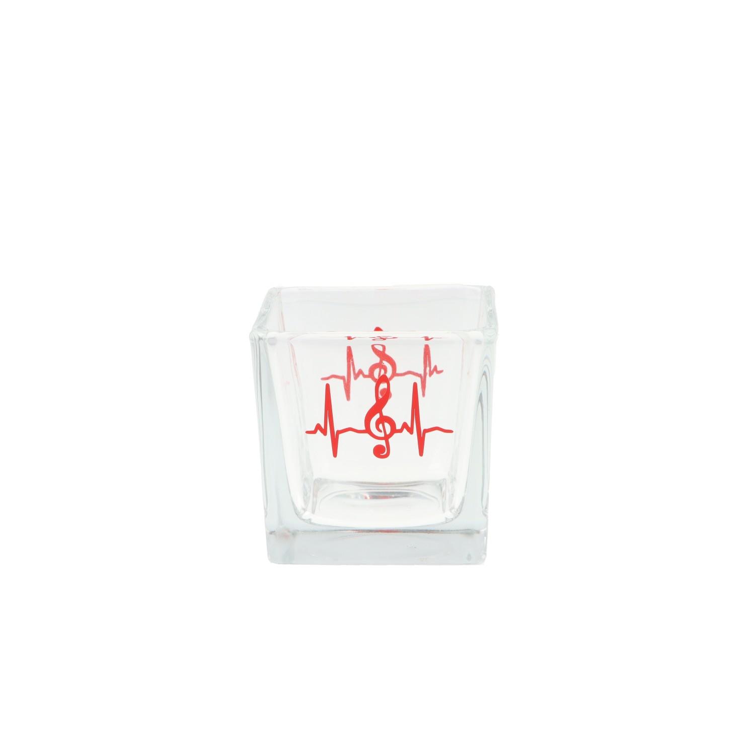 Quadratisches Teelichtglas mit Herzschlag und Violinschlüssel