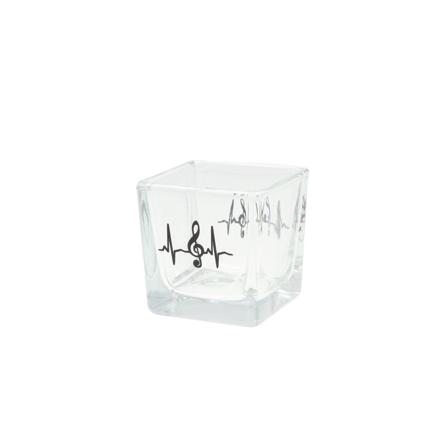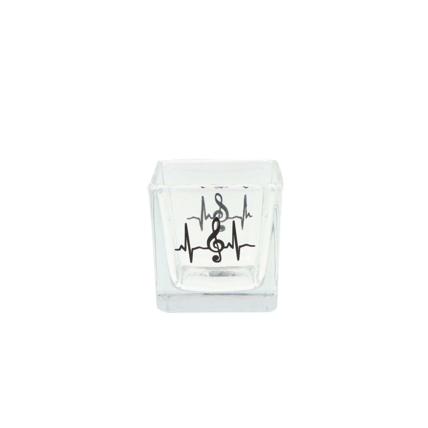 Quadratisches Teelichtglas mit Herzschlag und Violinschlüssel