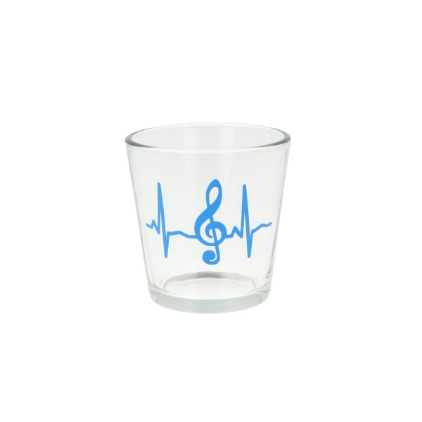 Teelichtglas mit Herzschlag und Violinschlüssel - azurblau