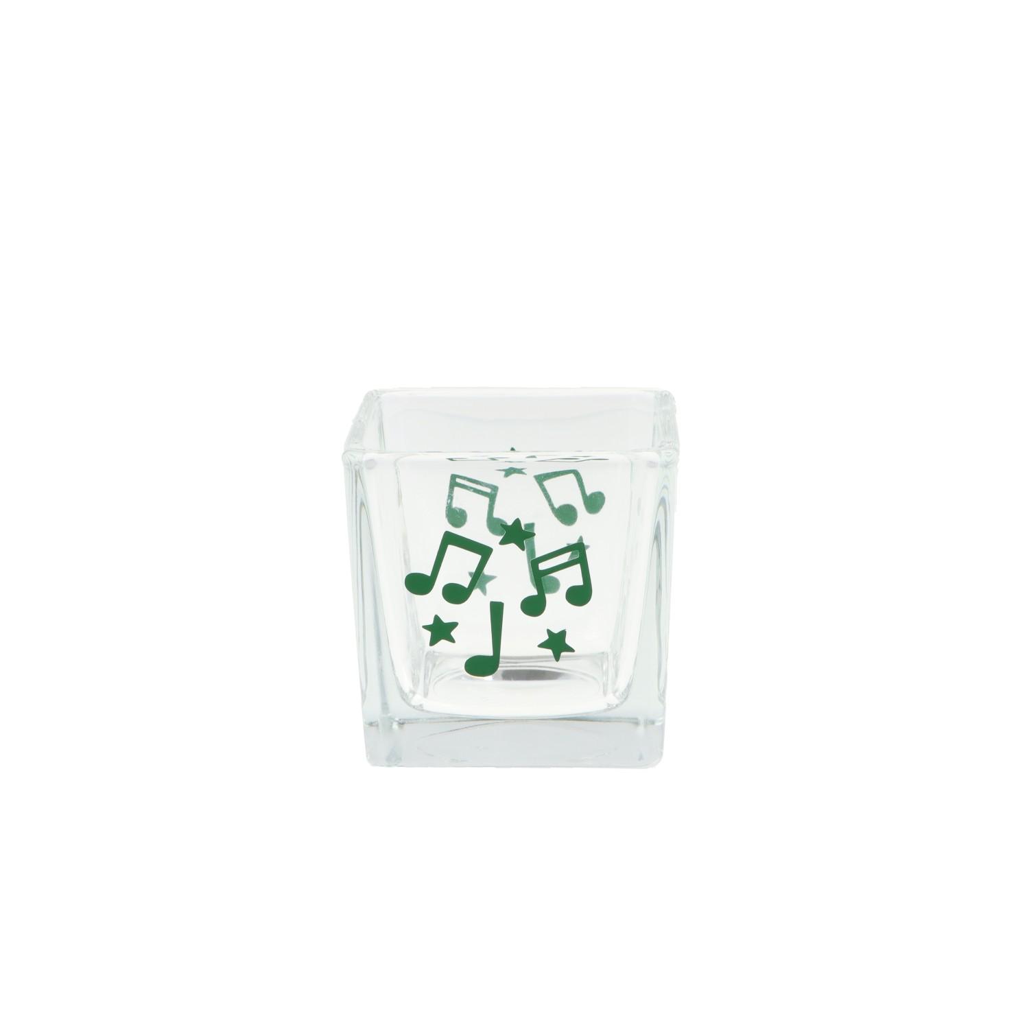 Teelichtglas mit Noten u. Sternen - dunkelgrün