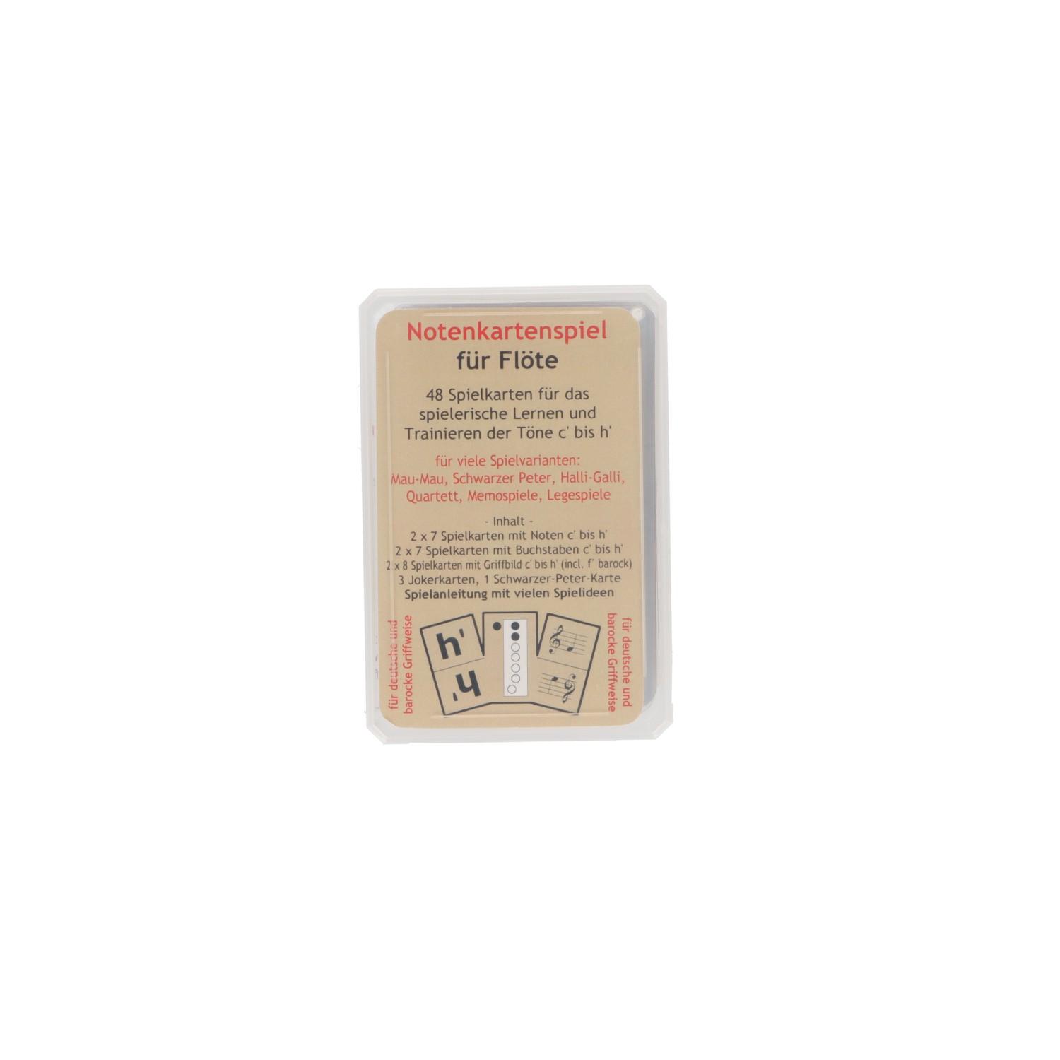 Mit dem Notenkartenspiel für Blockflöte lassen sich nun auch populäre Kartenspiele wie Mau-Mau, Schwarzer Peter, Halli-Galli und Quartett so spielen, dass dabei die Stammtöne c' bis h' (notiert im Violinschlüssel) gelernt und vertieft werden. Auch Dominospiele und Memospiele können gespielt werden.