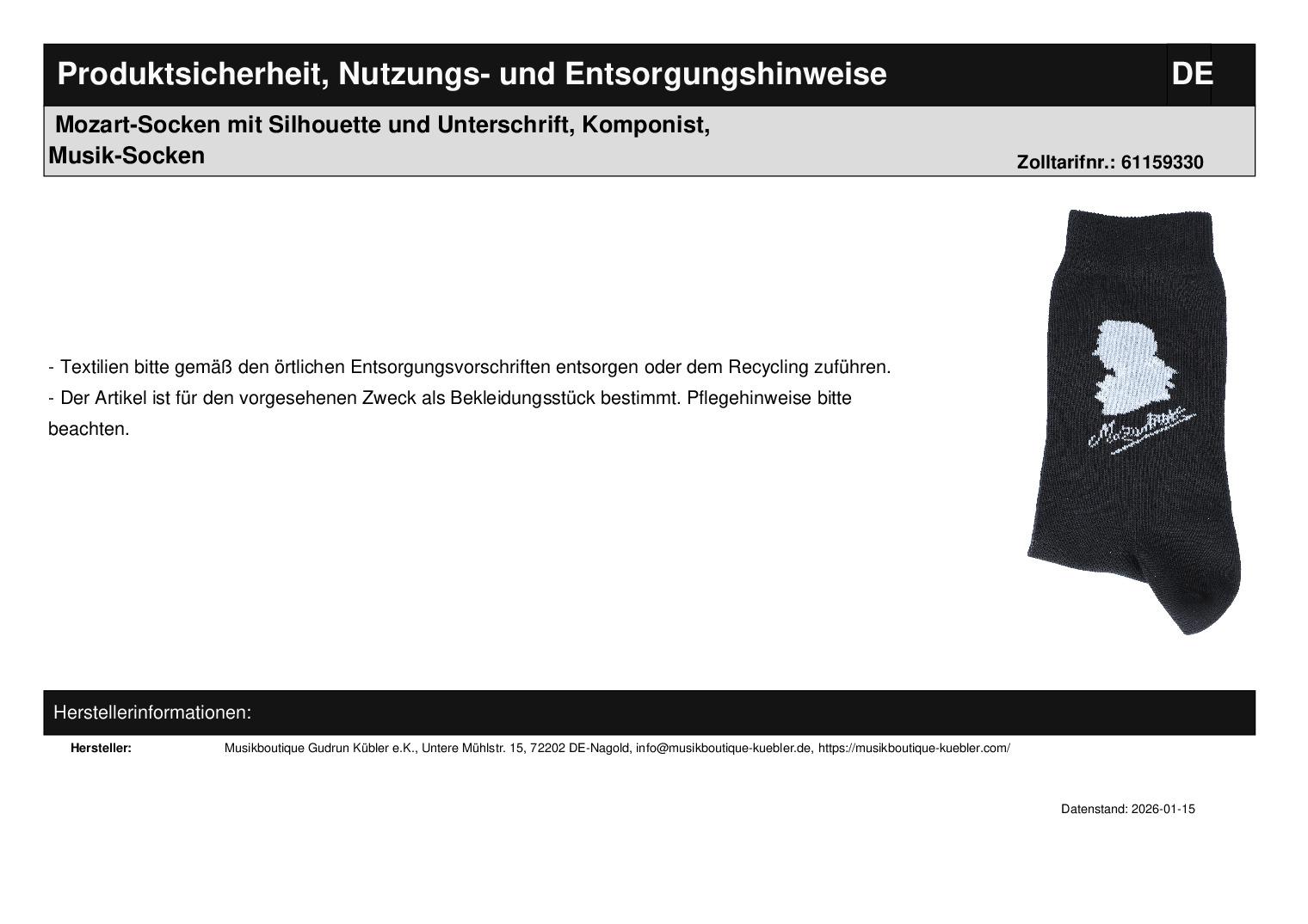 Kundenbewertungen für "Musiker-Socken "Mozartsilhouette und Unterschrift""