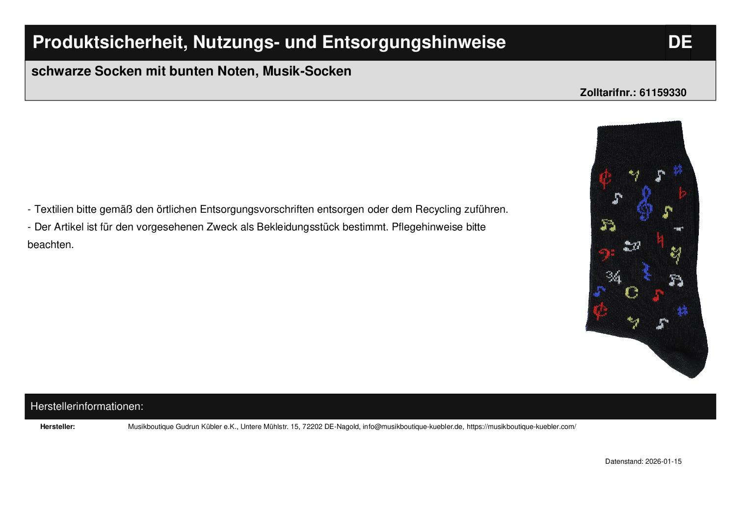 - Musik-Socken mit eingewebtem Motiv "Noten bunt"