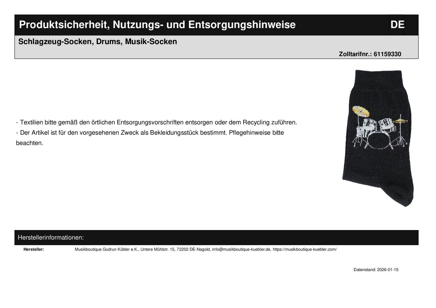 - Musik-Socken mit eingewebtem Schlagzeugmotiv