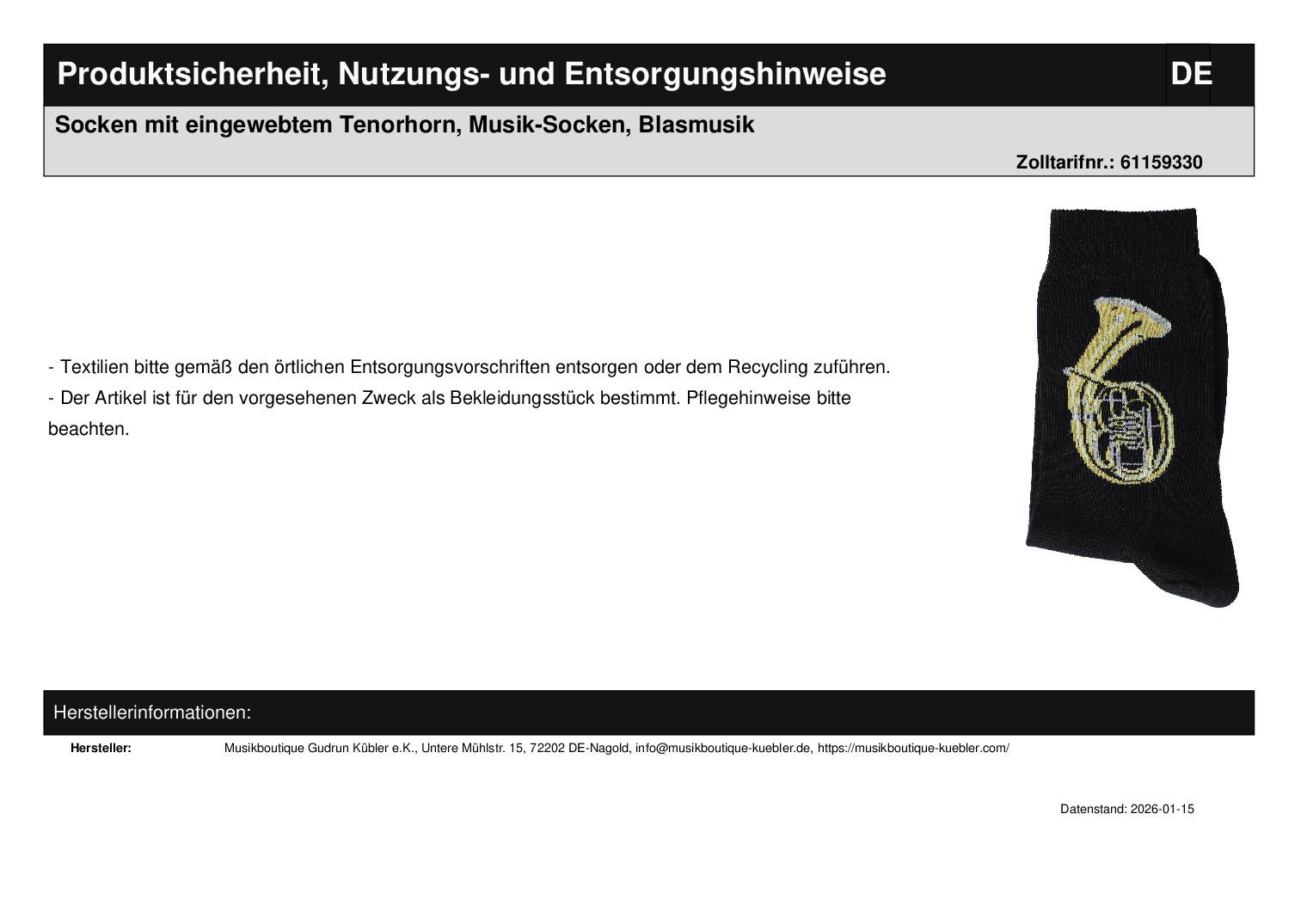 - Musik-Socken mit eingewebtem Tenorhornmotiv