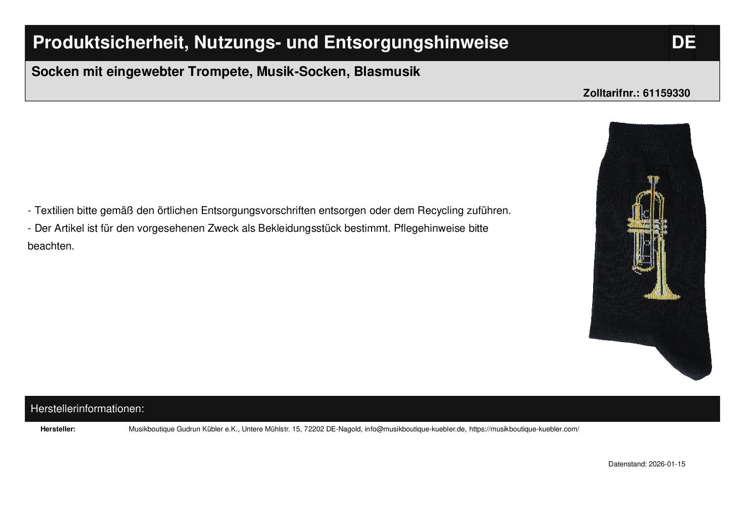 - Musik-Socken mit eingewebtem Trompetenmotiv