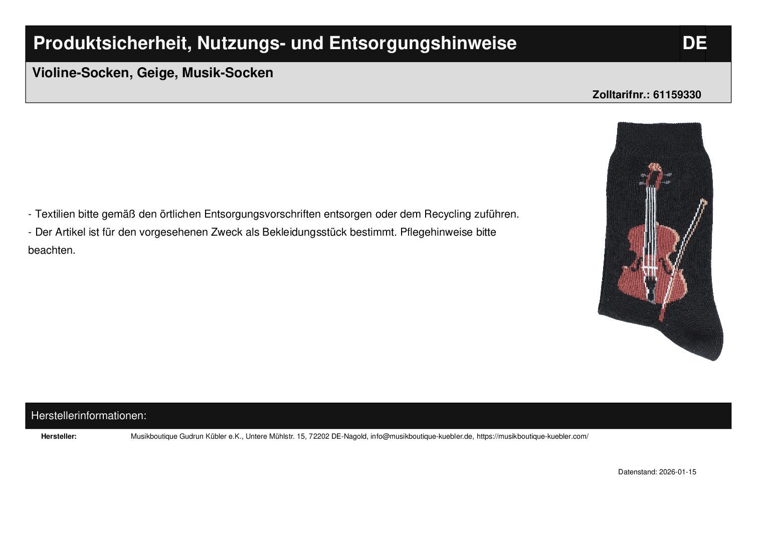 - Musik-Socken mit eingewebtem Violinenmotiv